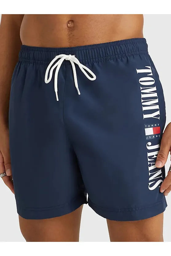Este bañador de estilo clásico incluye un práctico bolsillo trasero y un llamativo logo de Tommy Jeans en la pernera.