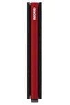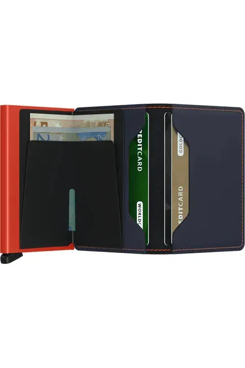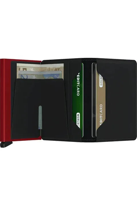Gracias a su perfil delgado, la Slimwallet cabe perfectamente en todos los bolsillos. La cubierta exterior se corta con una longitud más larga para crear más espacio para tarjetas, billetes y tickets. El corazón del producto es el Cardprotector, cuyo mecanismo permite extraer las tarjetas con un simple movimiento, evitando que se doblen, rompan o lean sin que nos demos cuenta.