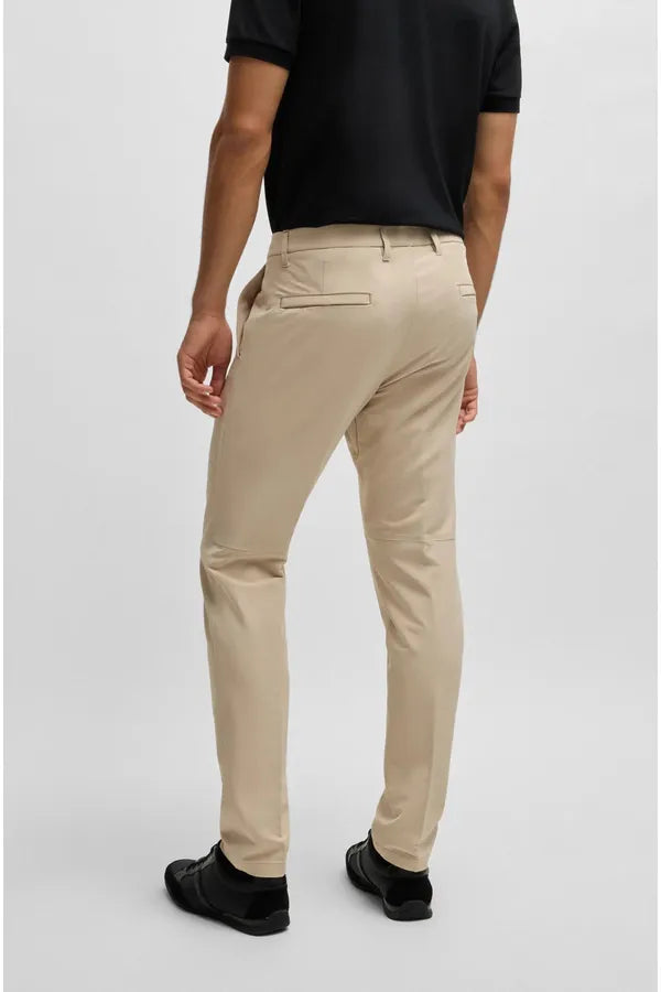 Unos chinos BOSS Hombre slim fit de estilo atemporal elaborados en tejido multielástico de planchado fácil para un confort óptimo. Están diseñados con un acabado repelente al agua de secado rápido. Esta prenda incluye una cintura personalizable con cordones que pueden llevarse por dentro o por fuera, así como un tarjetero integrado y un bolsillo monedero para moverse por la ciudad sin necesidad de llevar una cartera.