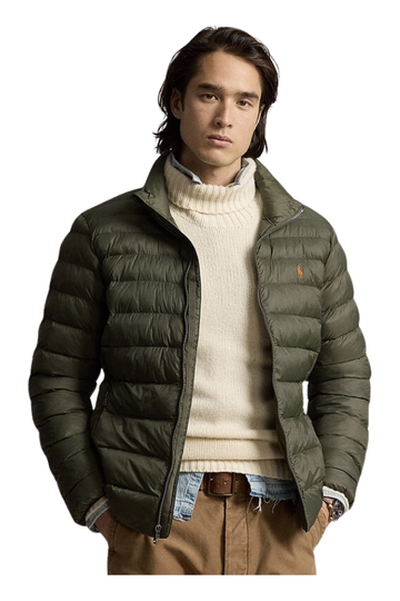 Confeccionada en tejido repelente al agua, esta chaqueta se guarda en su propio bolsillo y está desarrollada con un relleno aislante alternativo al plumón.
