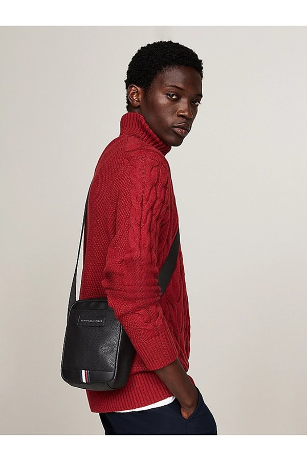 • Logo metalizado de Tommy Hilfiger en la parte delantera
