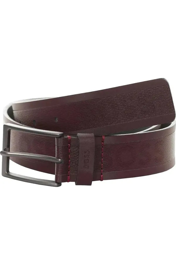 Un cinturón BOSS elaborado en Italia. Este característico cinturón de 3,5 cm de ancho está elaborado en piel italiana con un moderno estampado a lo largo de la correa. La trabilla de la marca y la hebilla de metal pesado le aportan el toque final. Si quiere lograr un ajuste impecable, recomendamos pedir un cinturón de una talla superior a la de su cintura.