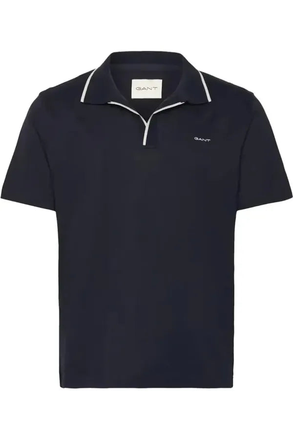 Un polo de manga corta para hombre con tapeta forrada en contraste y sin botones, que crea un cuello en V de aspecto informal y combina en color con un llamativo detalle en el cuello y una inscripción de la marca bordada en el pecho. Un corte recto y perfectamente ajustado que, en combinación con una composición de materiales de alta calidad, garantiza una sensación de gran comodidad durante el uso. El jersey de algodón que mantiene la forma a largo plazo destaca por su agradable suavidad y su transpirabilidad única. Artículo versátil y combinable apto para el día a día.