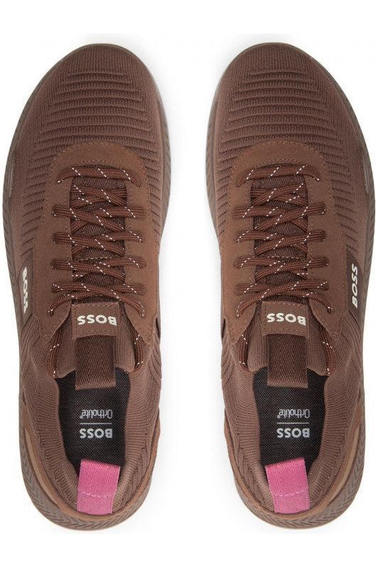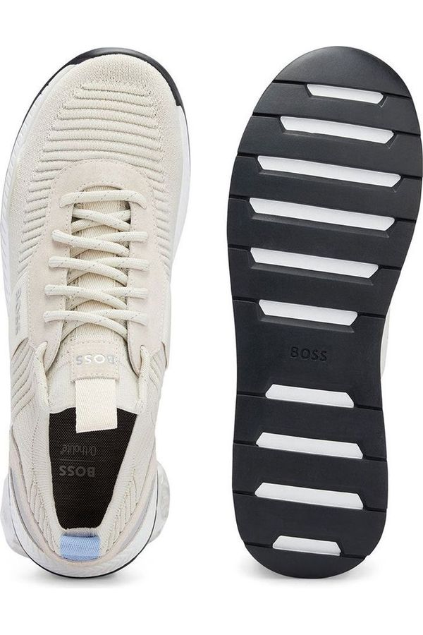 Deportivas tipo calcetín BOSS con empeines de punto con textura y suela ligera de EVA con huella de goma. Estas deportivas presentan detalles sutiles de la marca en la lengüeta, en el panel lateral y en la parte trasera, así como detalles elásticos y de cincha. En nuestros productos RESPONSIBLE siempre utilizamos como mínimo un 60 % de materias primas sostenibles. Este par se ha elaborado en parte con fibras REPREVE®. REPREVE® es una fibra de marca líder fabricada a partir de materiales reciclados, como botellas de PET. Cada año, miles de millones de botellas de plástico van a parar a vertederos, y REPREVE® las transforma en hilos para un futuro mejor.