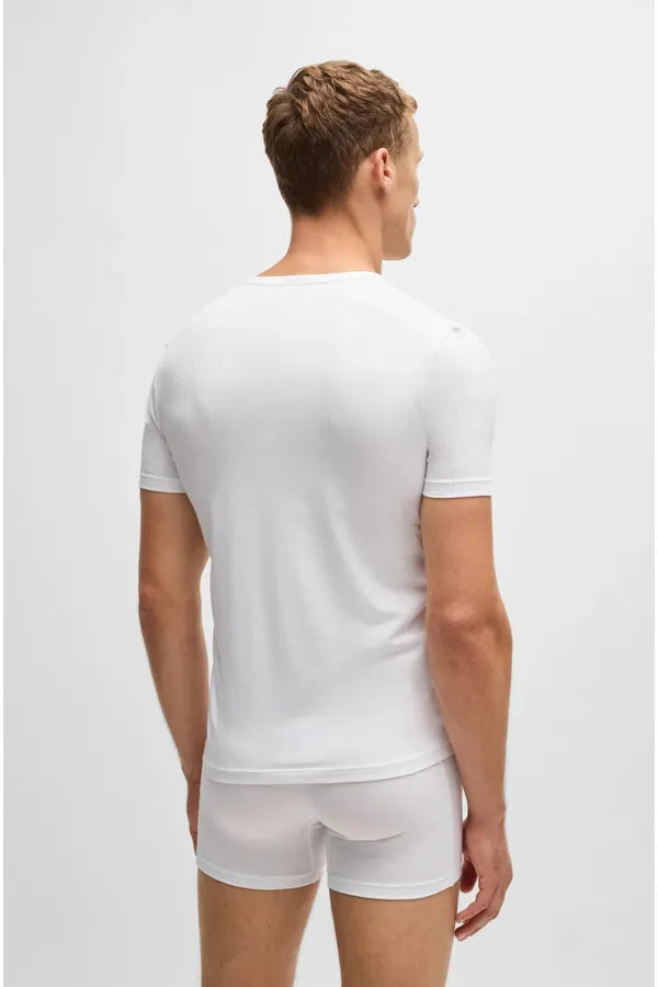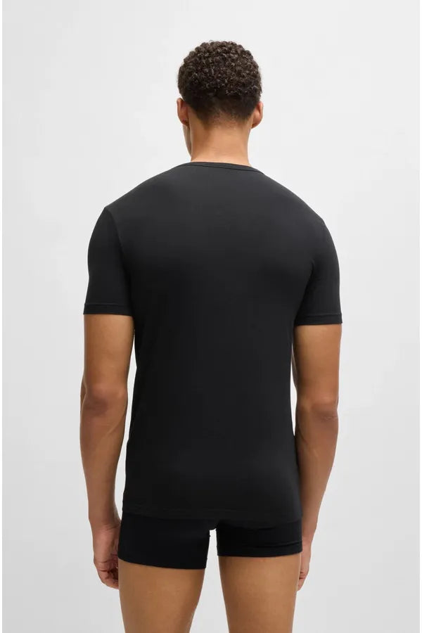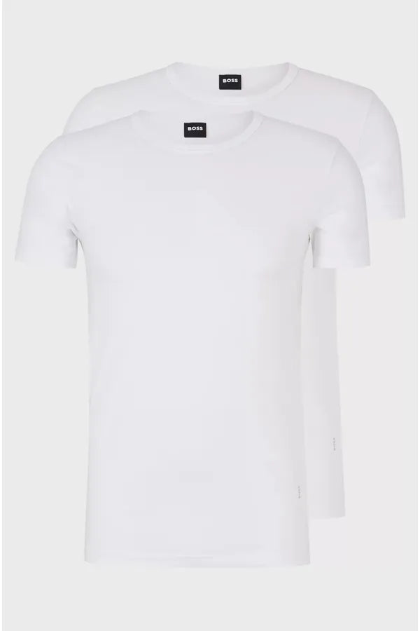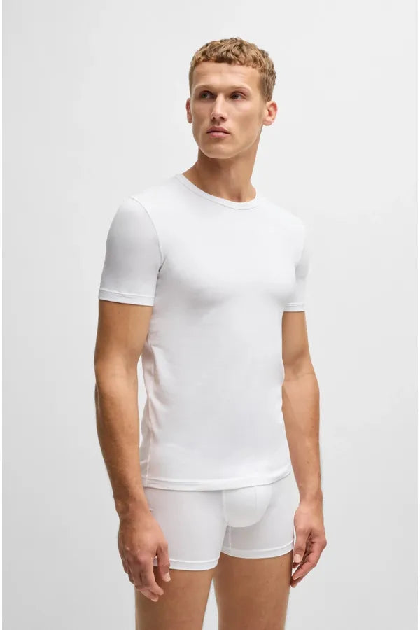 Dos camisetas interiores de manga corta BOSS Hombre. Elaboradas en punto sencillo de algodón elástico, estas camisetas supersuaves se completan con un cuello redondo y un discreto logo BOSS estampado en el lado izquierdo. Gracias a su diseño slim fit, son ideales para llevar impecablemente debajo de un look de diario.