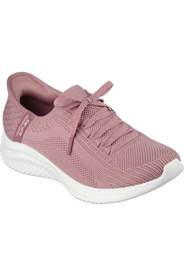 TOUCHLESS FIT® Disfruta de la comodidad sin esfuerzo de Skechers Hands Free Slip-ins®: Ultra Flex 3.0 - Brilliant Path. Diseñada con nuestra exclusiva Heel Pillow™. Este estilo cuenta con una parte superior de knit técnico Stretch Fit® con cordones decorativos y plantilla con amortiguación Skechers Air-Cooled Memory Foam®.